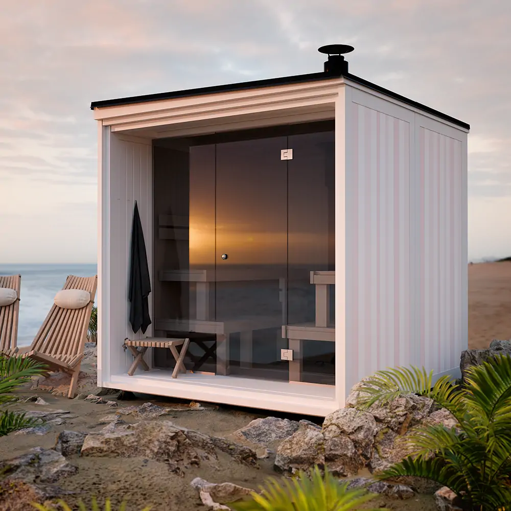 That small idea grew into a two-year journey of design, development, and countless sketches and prototypes.We wanted to make sauna bathing lighter, more joyful, and accessible – something that feels just as natural under the southern sun as by a Finnish lake. For us, visual harmony, functionality, and the perfect heat belong together — and ALEGRÍA sauna brings them into balance.